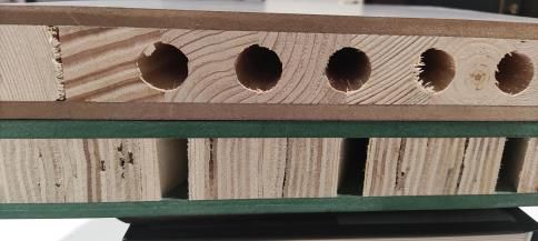 先說橋孔機械板,這是一種以木質纖維素材料為原料,涂上膠粘劑后加熱加壓膠合而成的人造板。為了保持板材的穩定性,通常會加入大量的膠水。自強污染是個頭疼的問題。你真的愿意拿自己和家人的健康開玩笑嗎?另外,由于橋孔機械板是碎木制成,穩定性不如實木芯,不一定能用幾年。