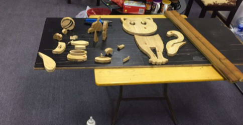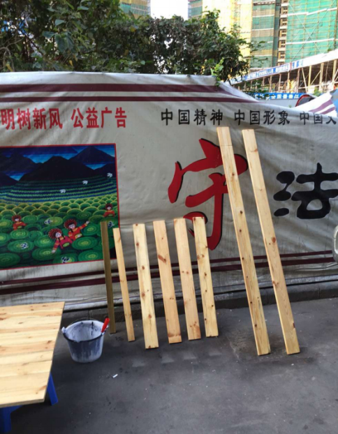 找來一張廢木板,接著籌備好在木板上進(jìn)行噴漆解決。