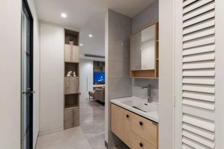 把衛(wèi)生間的洗手臺(tái)外置到過道區(qū)域,是一個(gè)很有智慧的設(shè)計(jì),可以大幅提升衛(wèi)浴使用效率!如果你家的面積不大,只有一個(gè)衛(wèi)生間且居住人口較多,那么就強(qiáng)烈推薦把洗手盆外置到過道上!這樣設(shè)計(jì)的話,早上大家急著出門時(shí),有人上廁所,其他人也不用干等著,可以現(xiàn)在洗手臺(tái)刷牙洗臉。