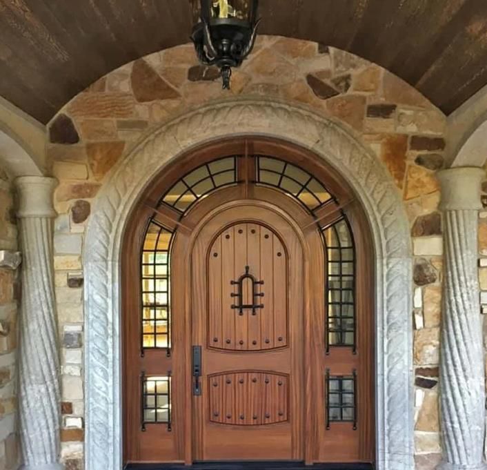 拱頂桃花心木雙門象征著莊嚴和奢華。這些雙門最適合搭配側燈和橫梁,以獲得真正的亮度。當與戶外枝形吊燈相輔相成時,它們構成了僅在最高檔的莊園中才能找到的入口通道。這種門設計推薦用于較大的住宅和豪宅。
