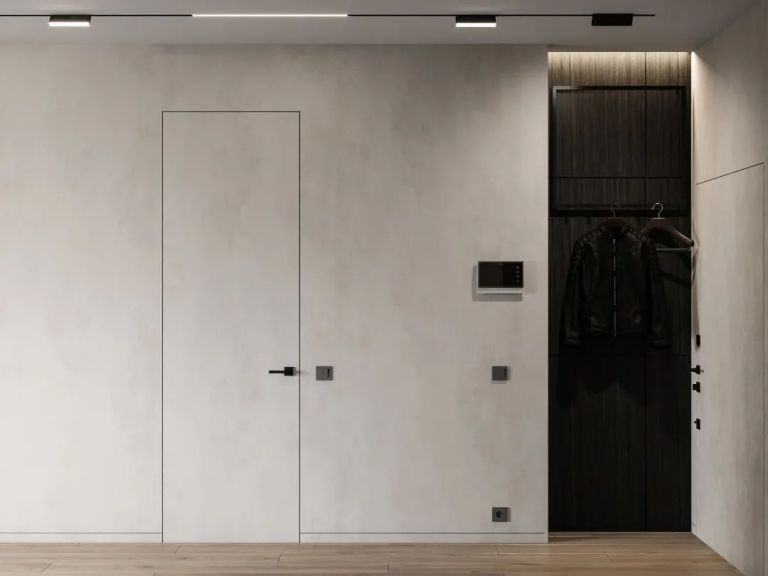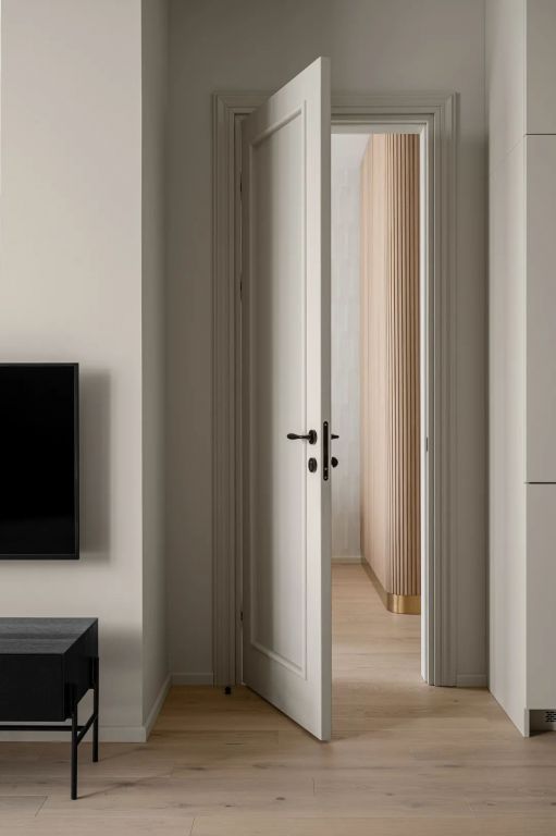 極致簡約的造型,高度的色彩凝練,將木門作為空間設計的入口,讓木門、墻板、家具飾面效果一體化,是家居空間的點睛之筆。