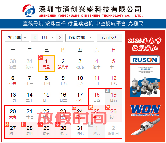 在2020年春節即將到來之際,涌創公司非常感謝您們一直以來的支持和關注,非常感謝您們對我公司代理產品WON直線導軌及