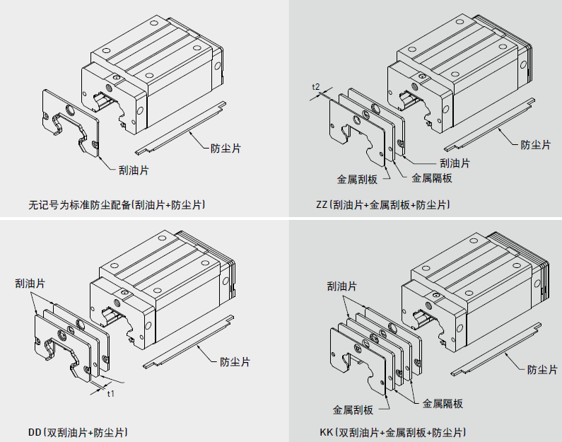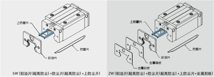 阻止加工鐵屑或塵粒進入滑塊里面,破壞珠道表面而降低直線導(dǎo)軌壽命。