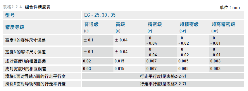 EG系列直線導(dǎo)軌的精度,分為普通、高、精密、超精密、超高精密級共五級,客戶可依設(shè)備精度