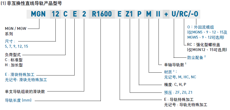 (1) 非互換性直線導軌產品型號