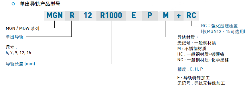 微型直線導軌MG系列的命名規則及型號