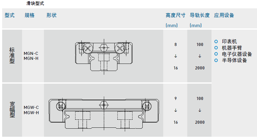 HIWIN提供標準型及寬幅型兩種直線導軌,方便客戶選型使用。