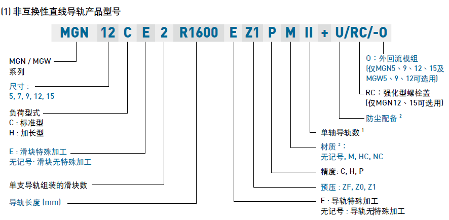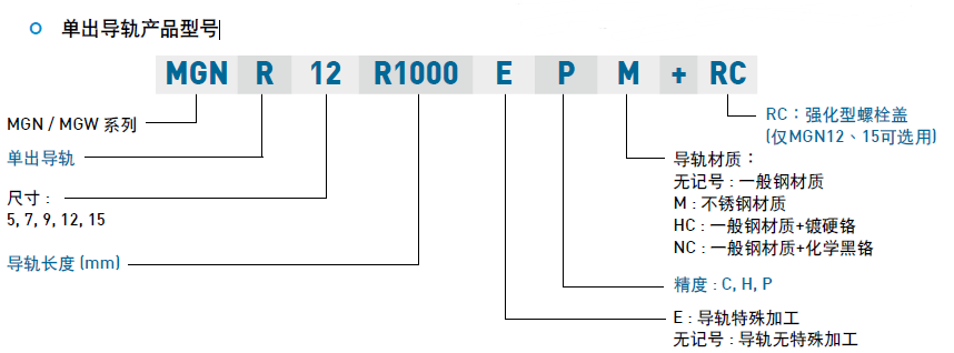 注:1.The bottom seal is available for MGN & MGW 9, 12, 15.