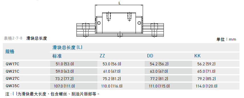 3、 防塵代碼之滑塊總長度及規(guī)格對照表,請訂直線導(dǎo)軌的時候一定要確認(rèn)清林,以便出錯