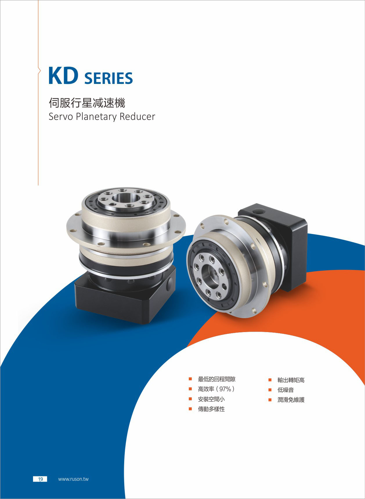 KD法蘭斜齒系列擁有最低的回程間隙,最高的輸出扭矩和最高的扭轉鋼性。使用高達97%的效率,且噪音低,性能高,電機安裝方便和潤滑免維護特點。